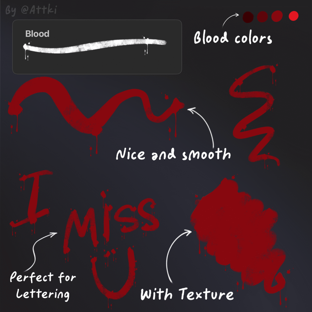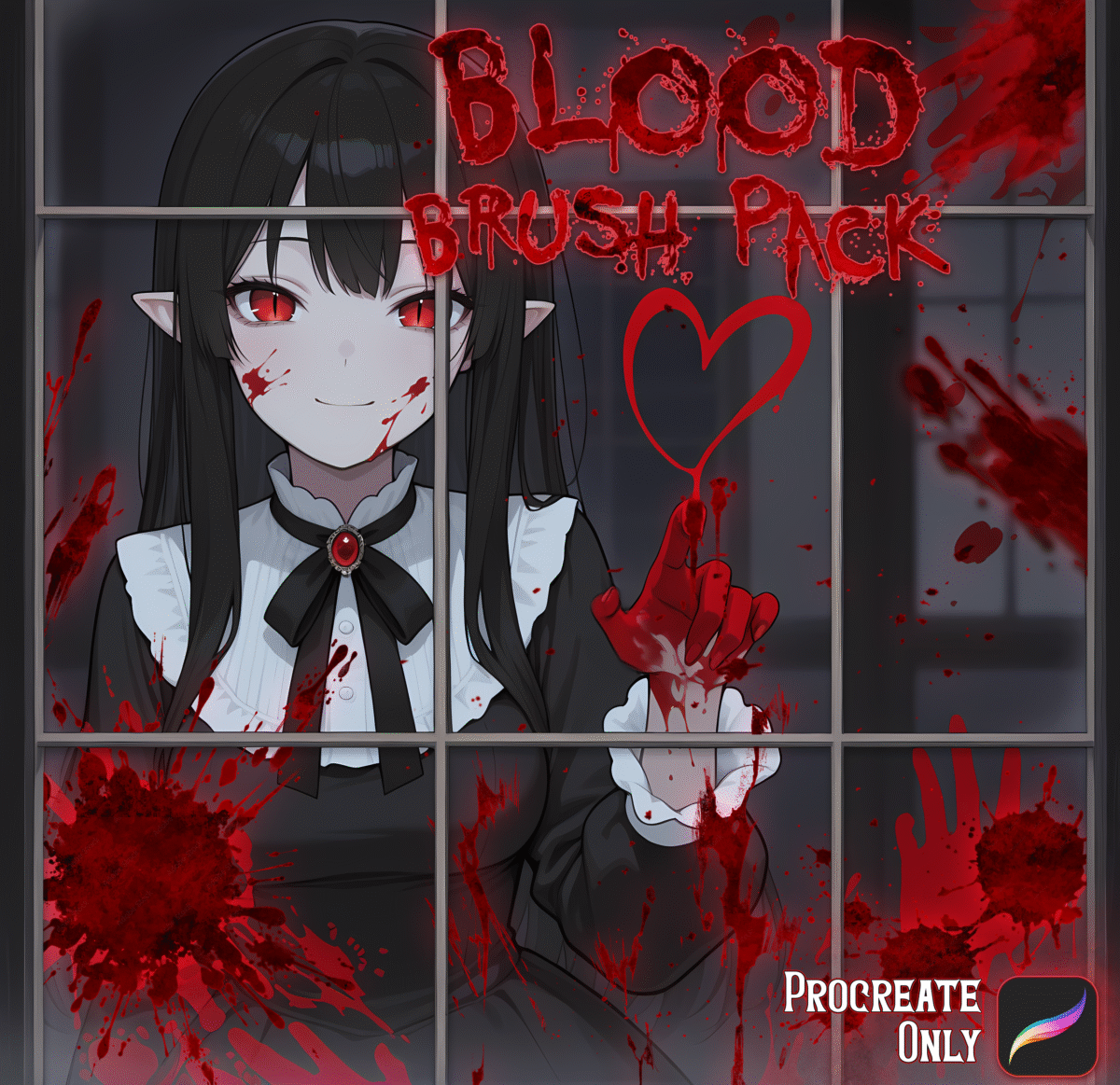 You can get a full version of it – Blood brush pack for procreate(57 brushes)!