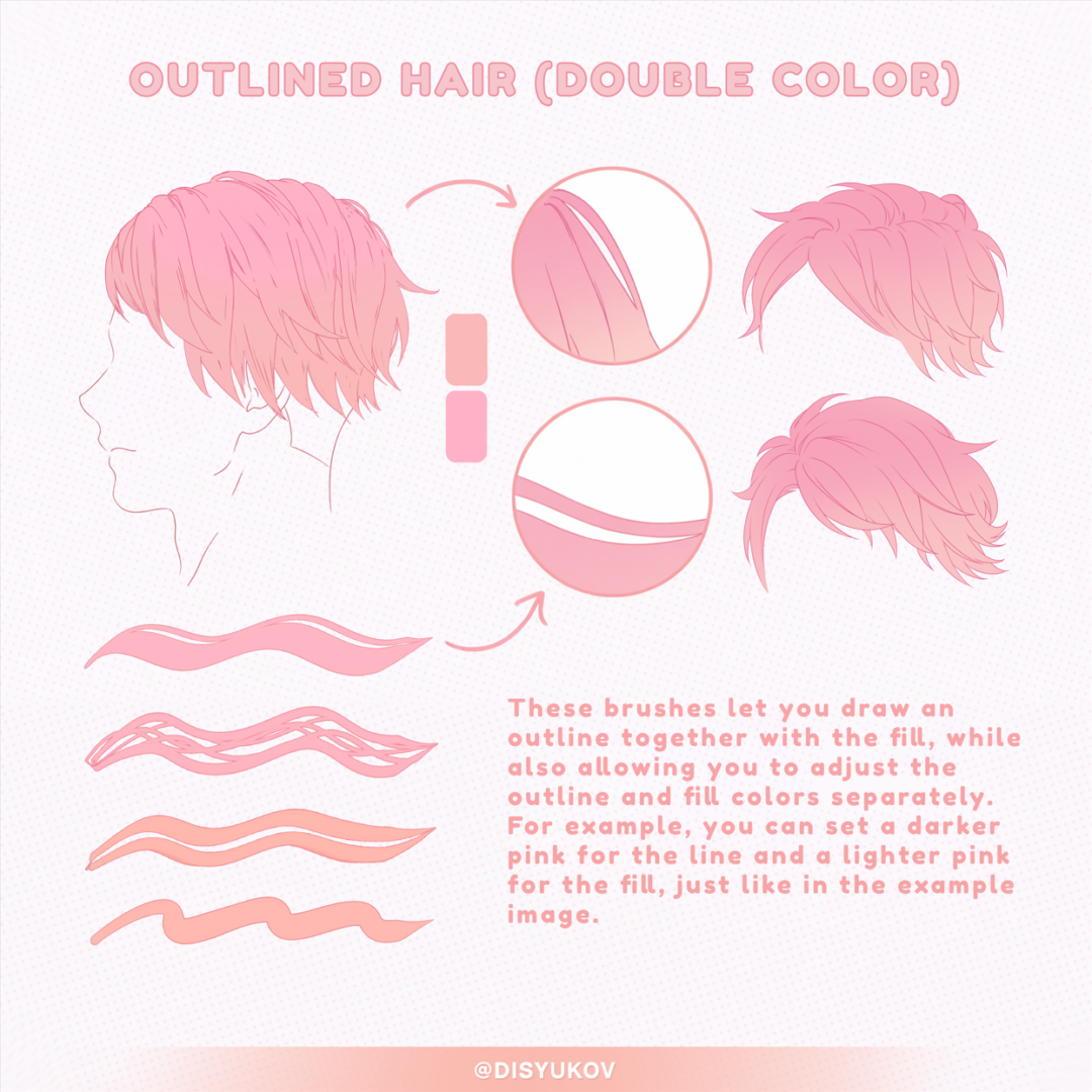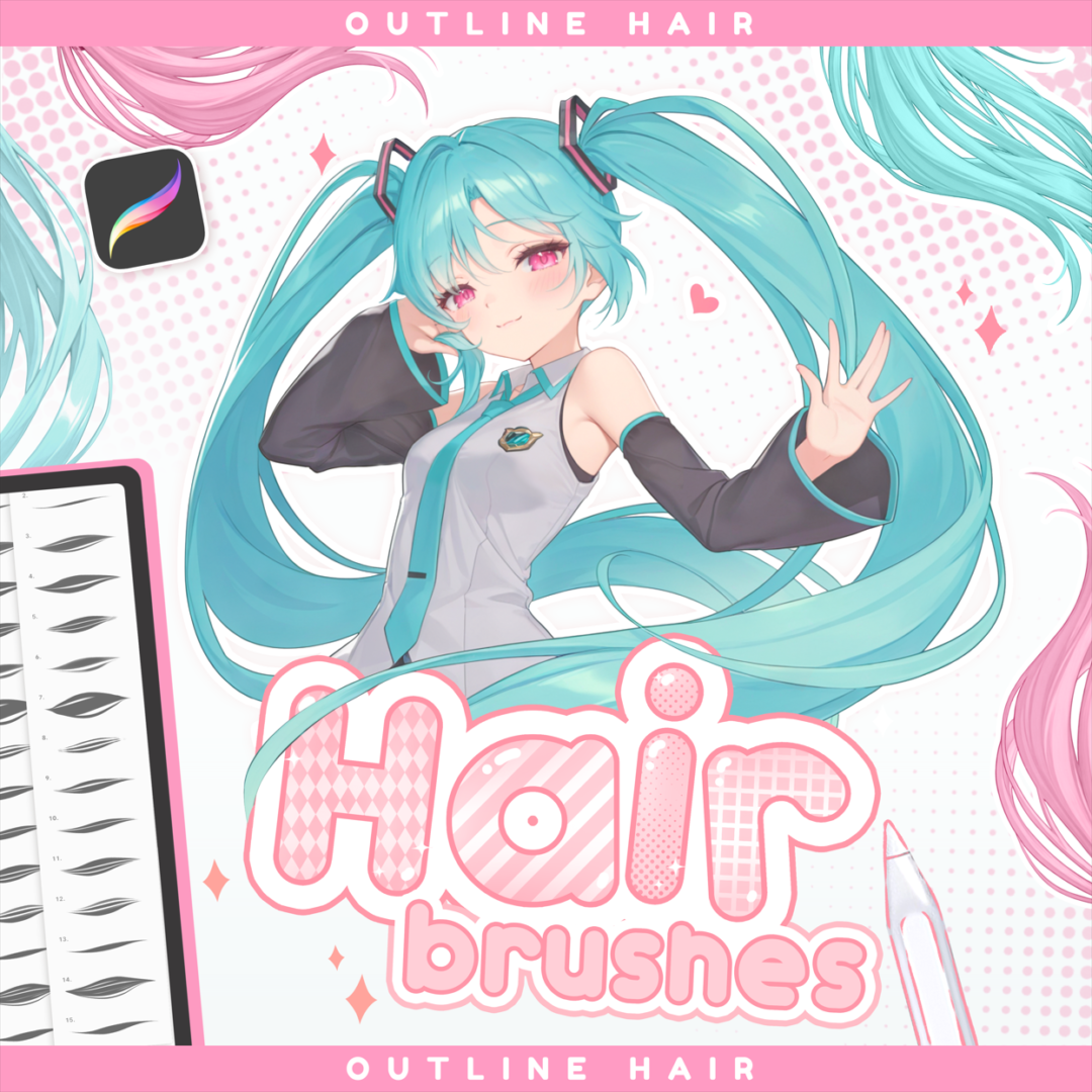 You can get a full version of it – Outline Hair Brushes for Procreate (100 brushes)