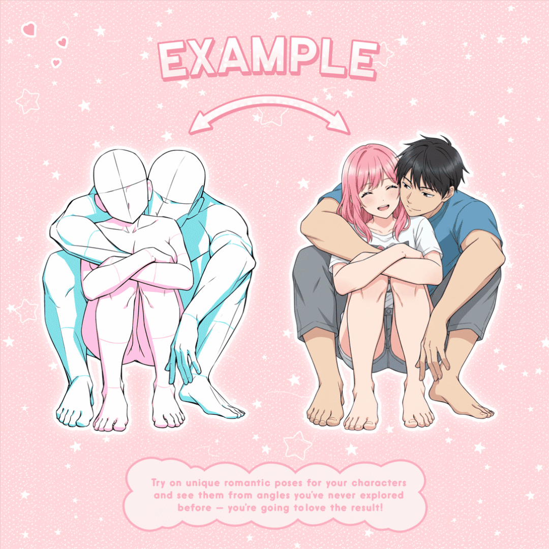 You can get a full version of it – 20 Romantic Poses for Procreate, Photoshop, CSP